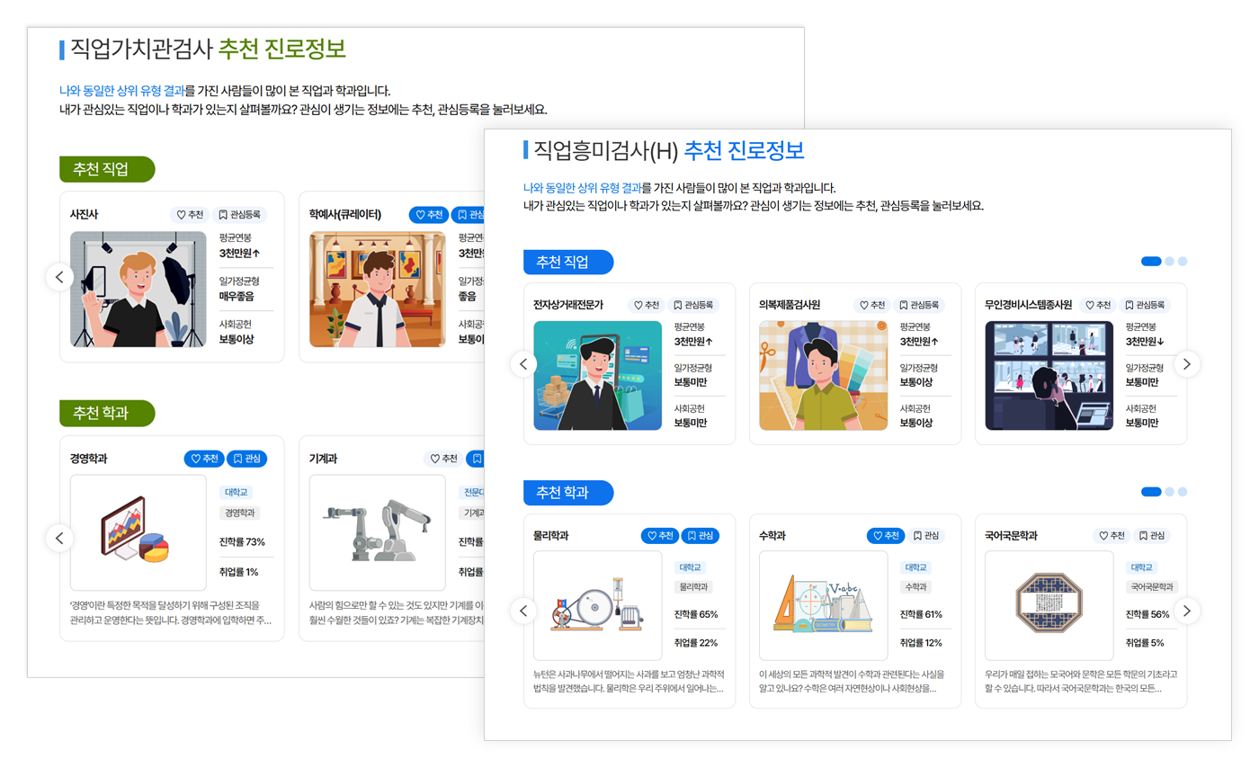 진로 심리 검사 결과 - 인공지능이 추천하는 나의 진로 정보
